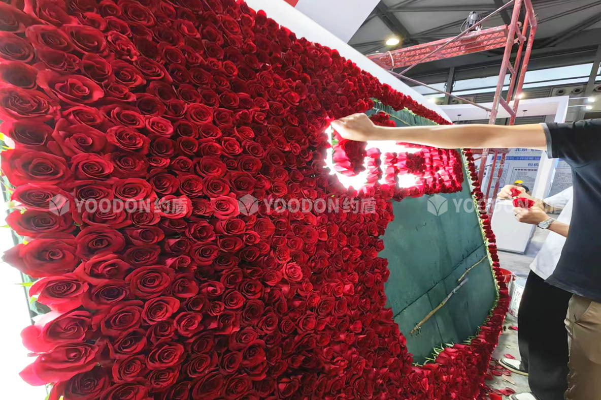 展位從不同角度都通透明亮,非常吸睛,多處LED大屏幕、柔性燈帶冰屏使用,讓展臺動感起來,玫瑰花展臺的設(shè)計更是新穎之處,擴大視覺的同時大氣渲染了寰宇通達的國際品牌形象,聚擾眼球,給參展觀眾帶來不一樣的視覺盛宴。
